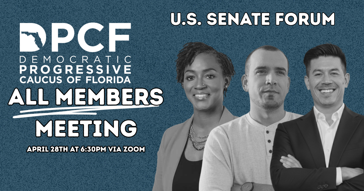 Join the Democratic Progressive Caucus of Florida for our April All-Members Meeting on April 28th at 6:30pm via Zoom!
